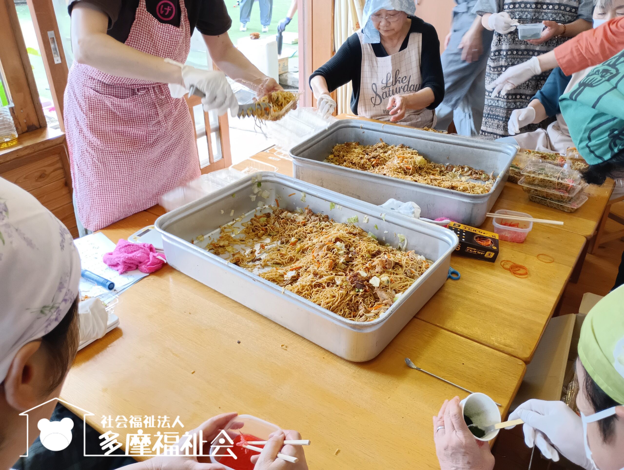 同窓会の小学生もやきそば作成の加わっています。ありがとう!。