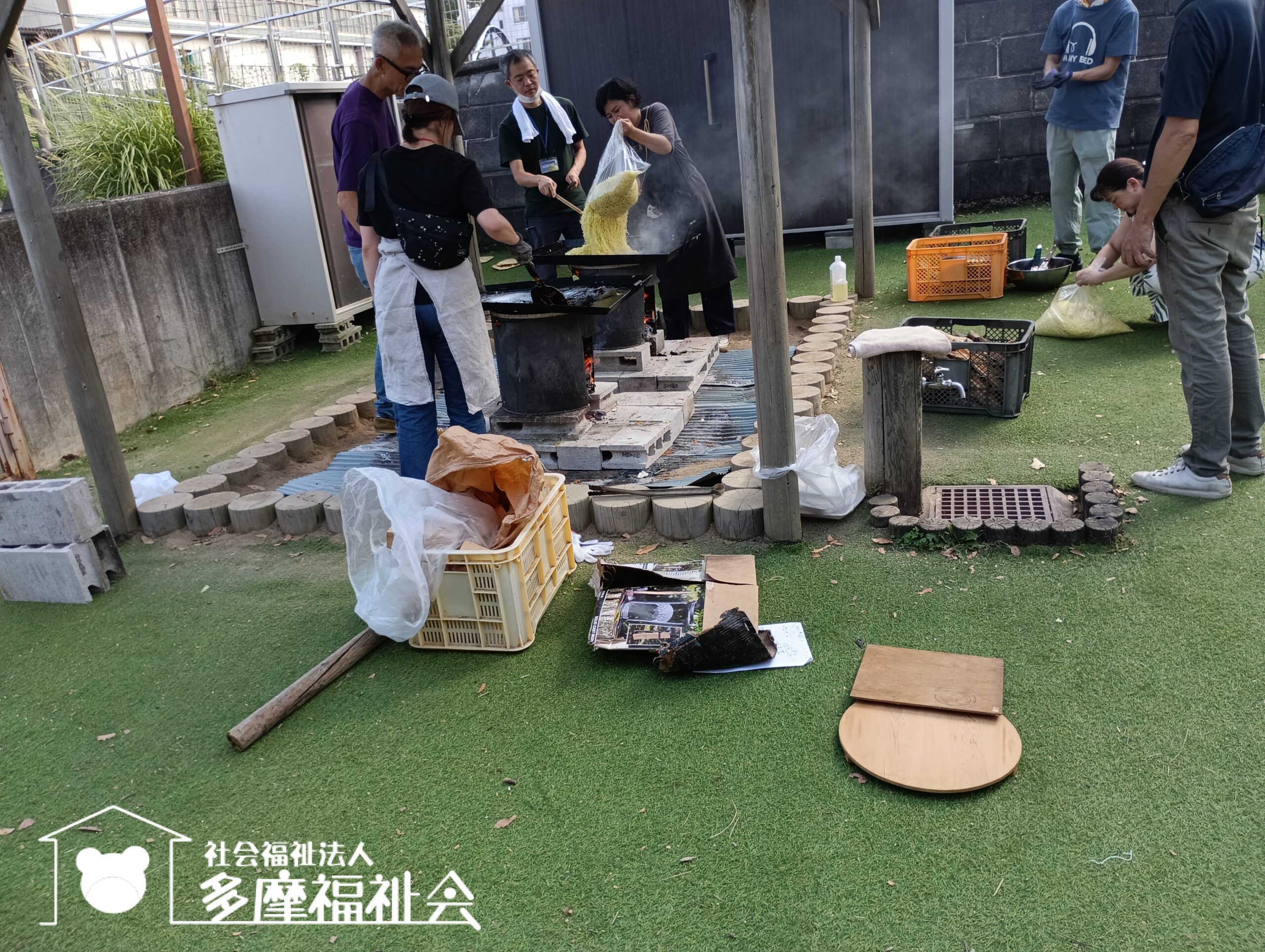 わいわいしながらお祭り参加者のための食べ物をみんなでつくるってほんとに楽しいひと時です。