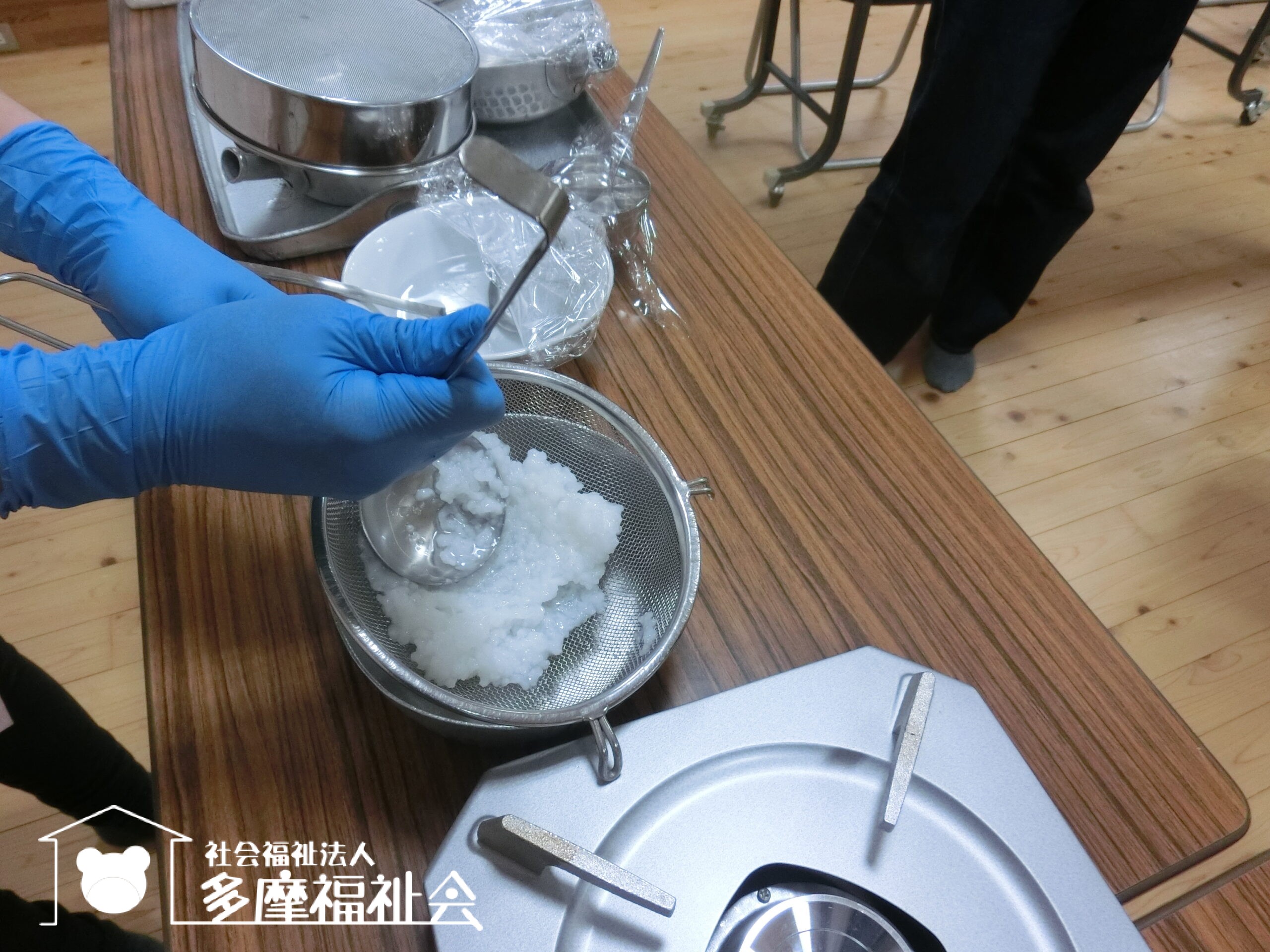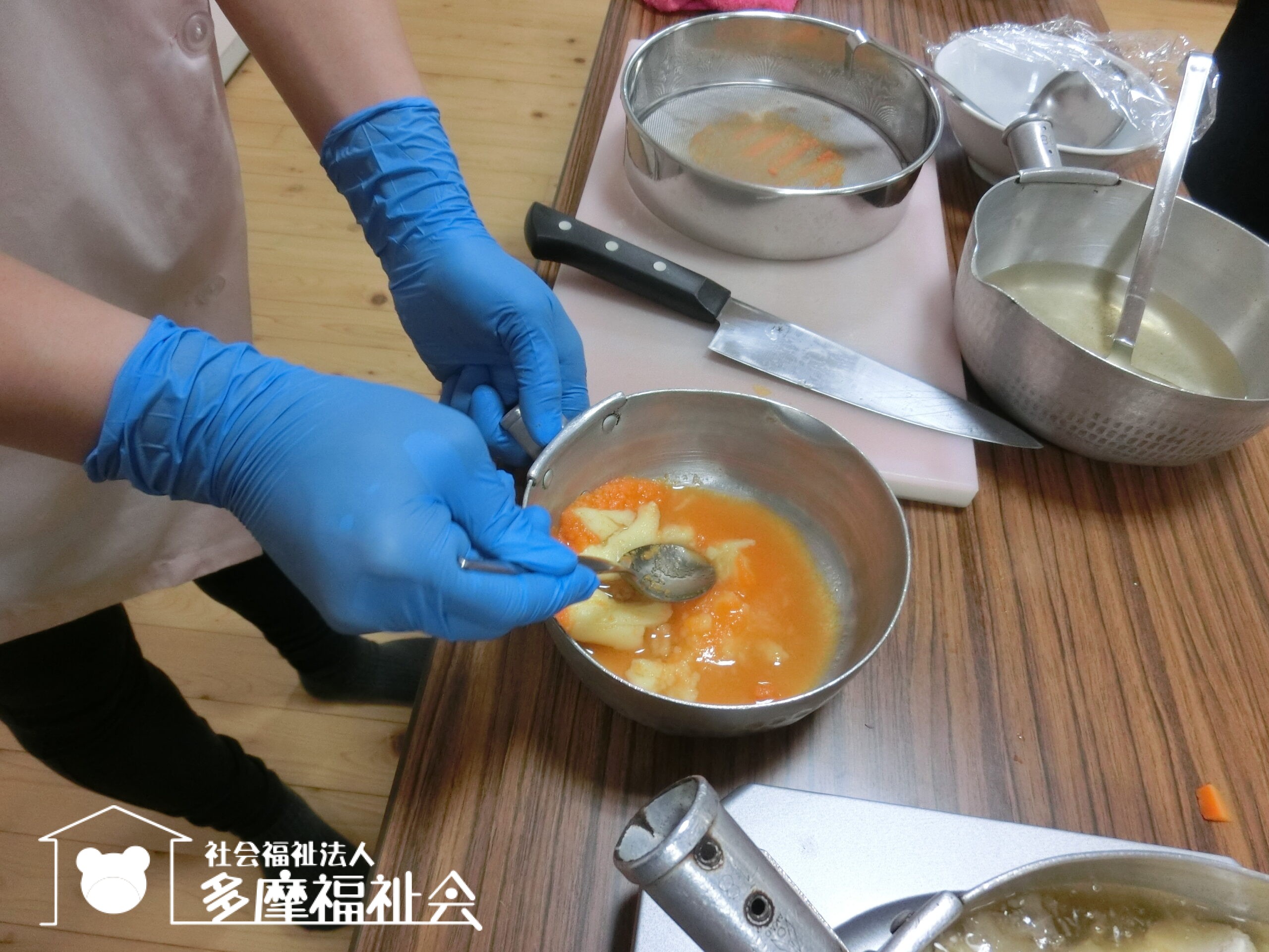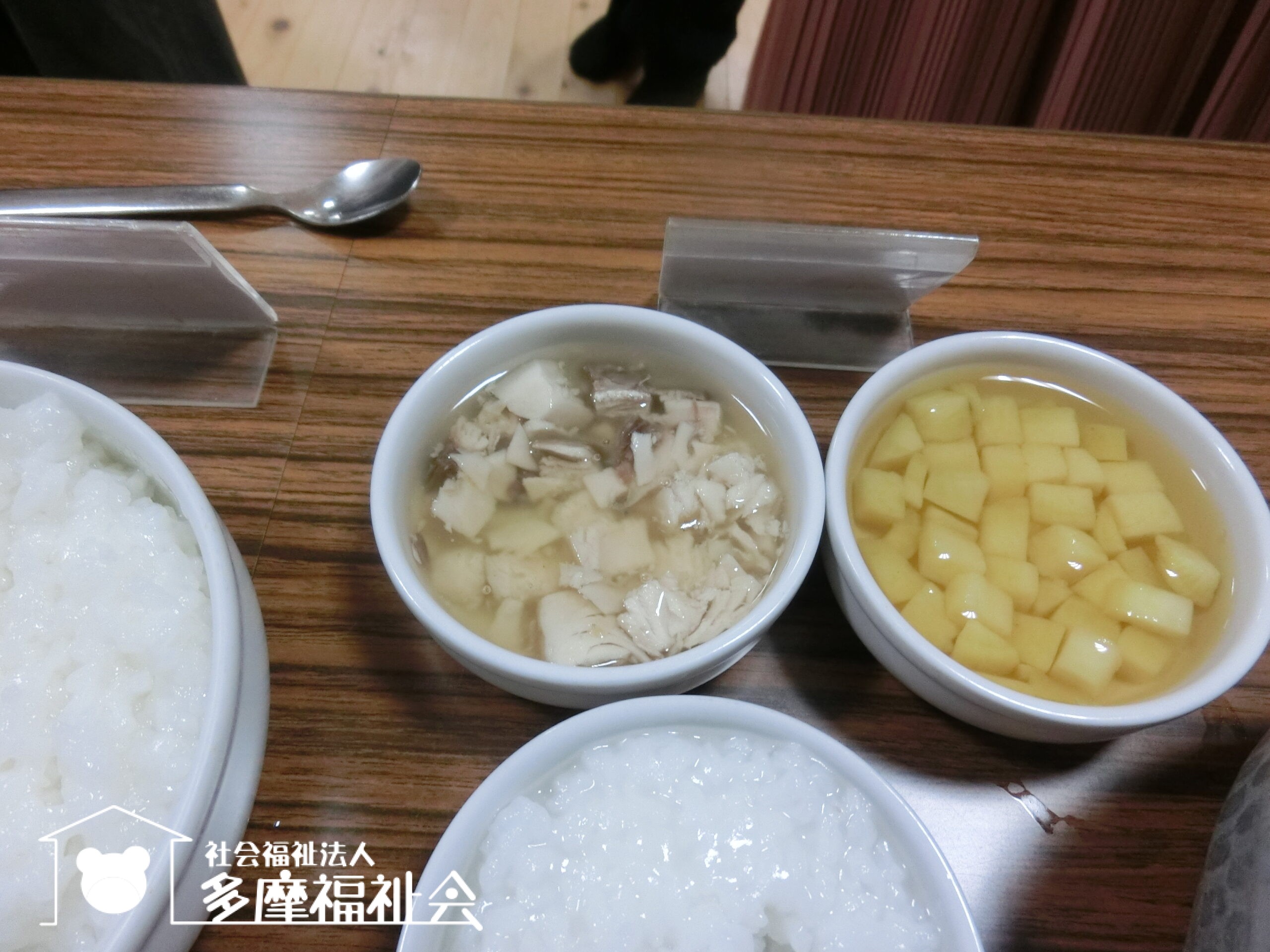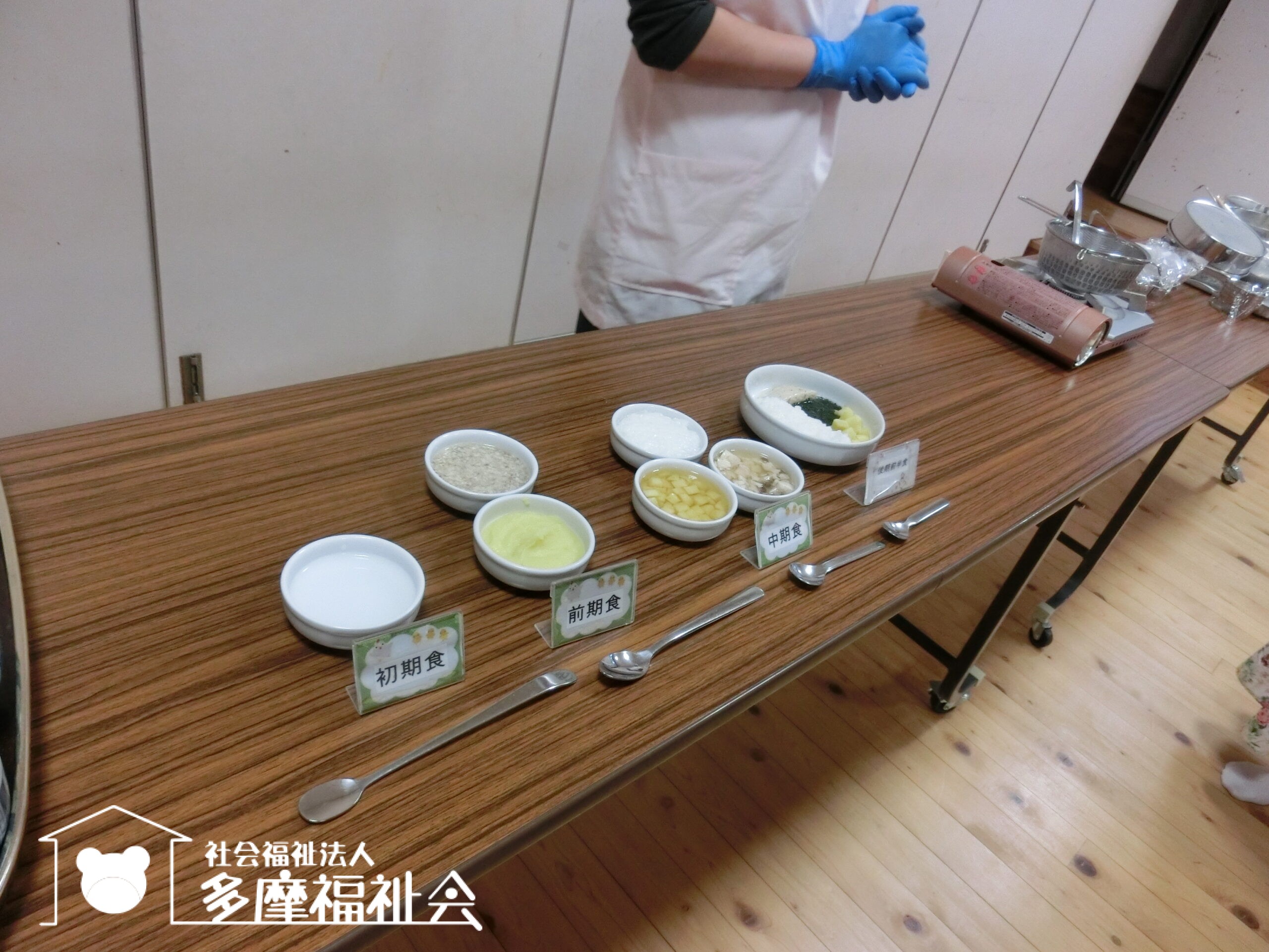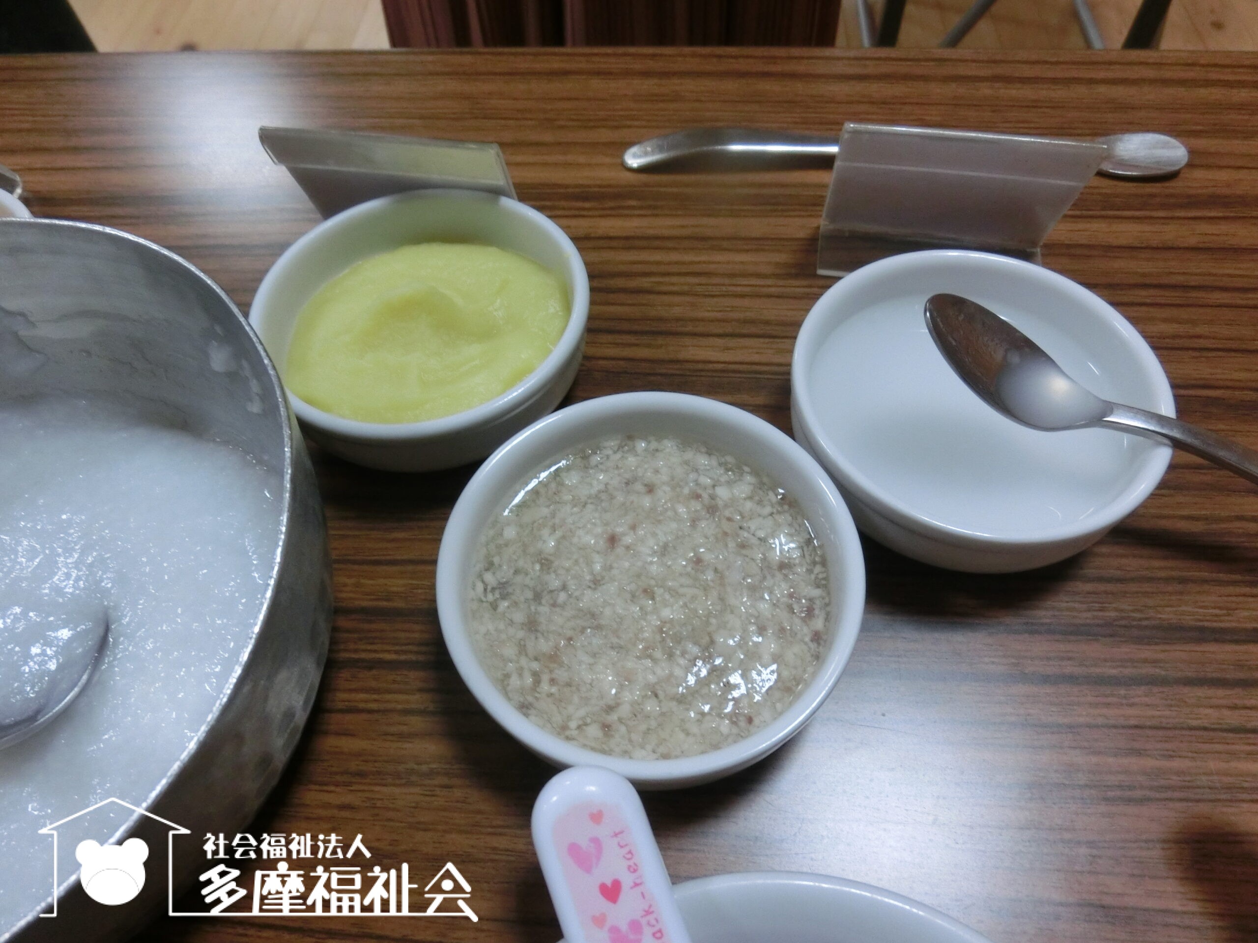 今日の実演は、裏ごしがゆ、ニンジンマッシュ、豆腐の野菜煮です。