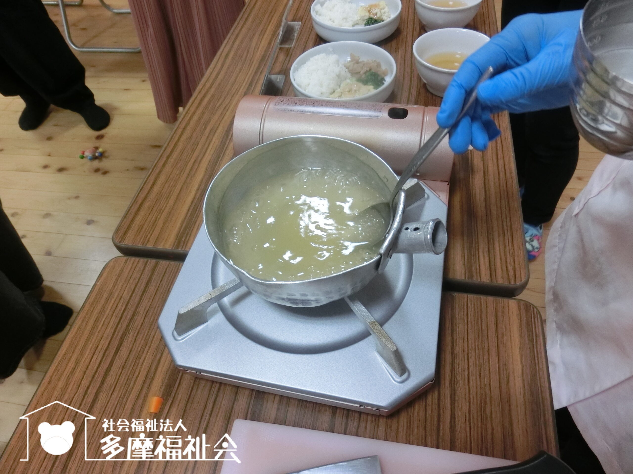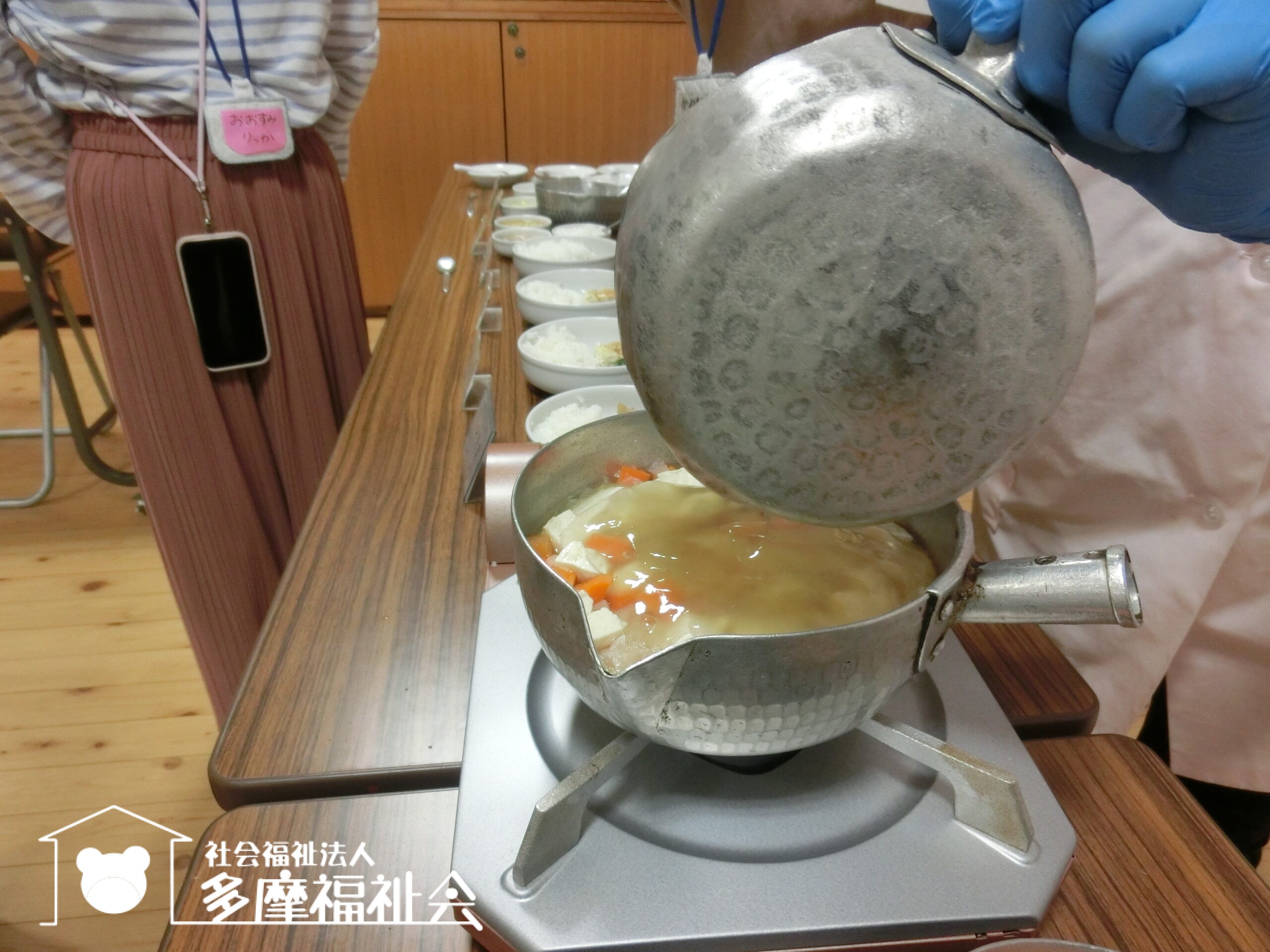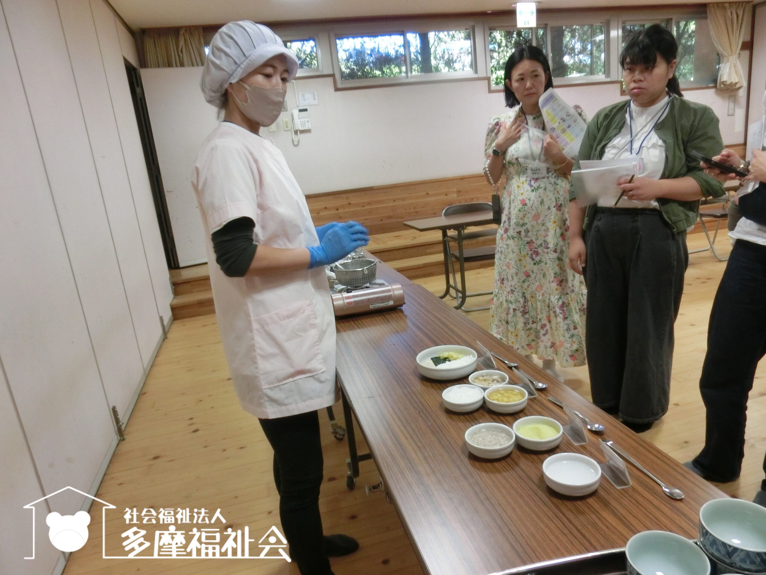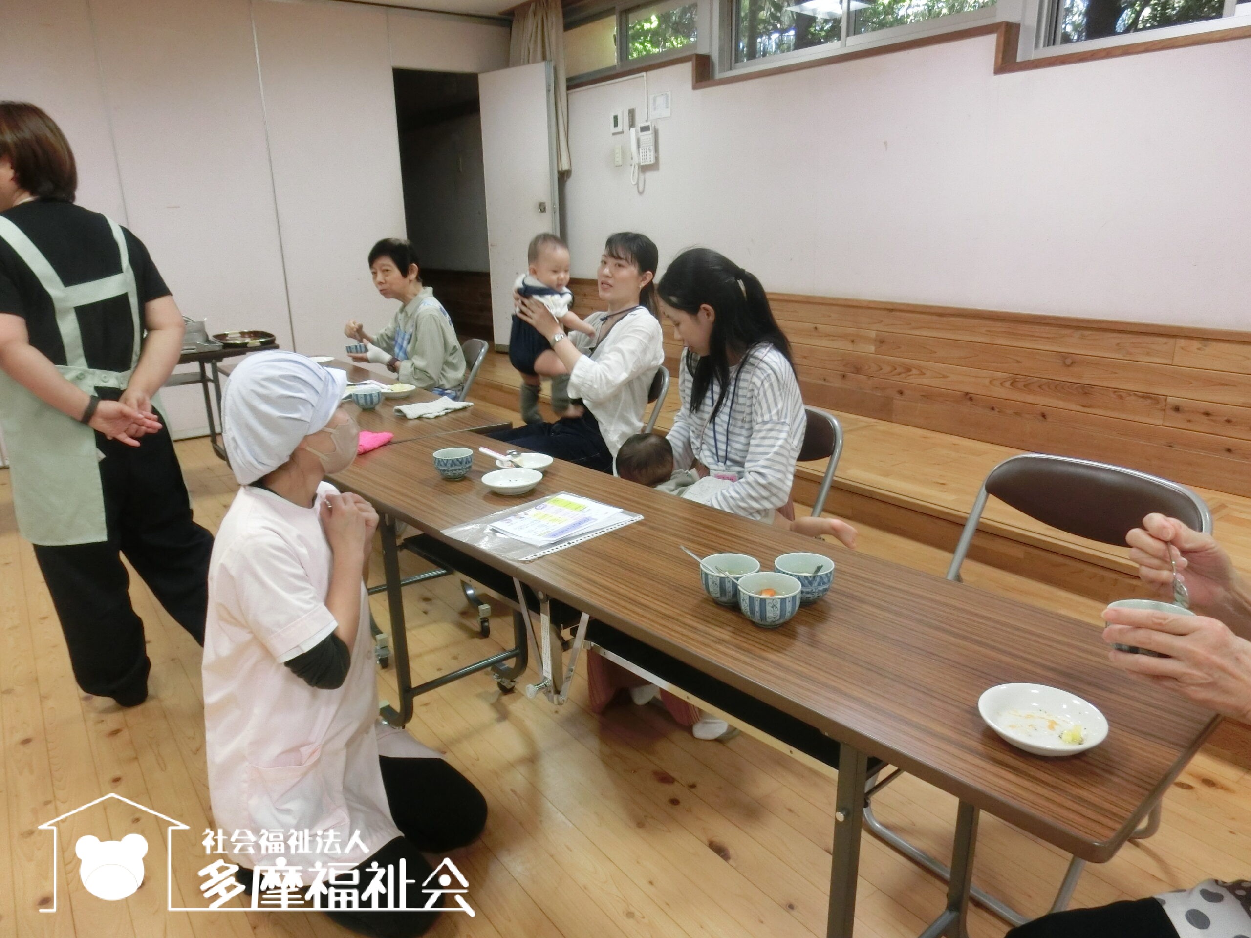 豆腐の野菜煮の実演をしました。離乳食全段階の味見もしていただきました。
