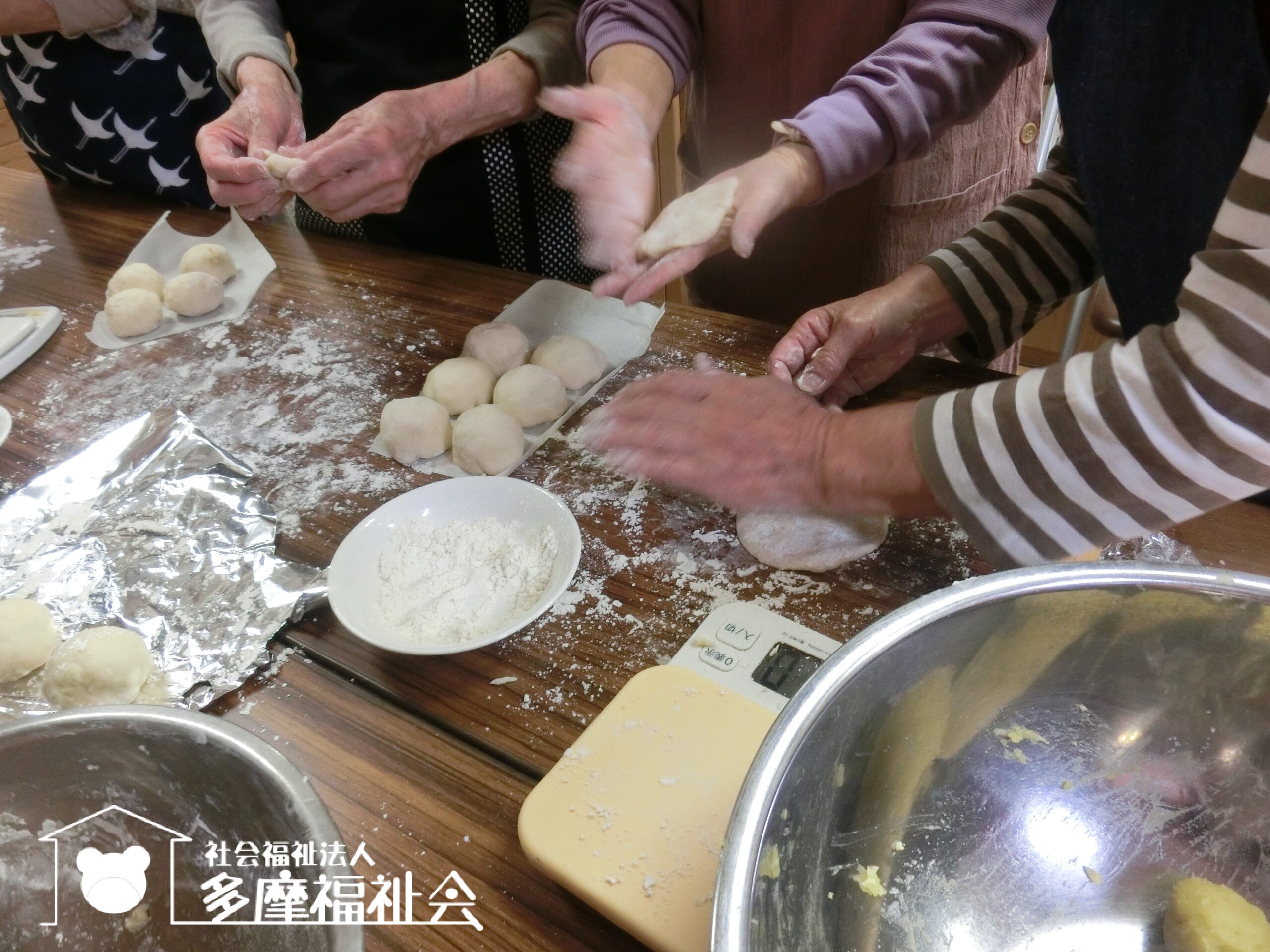 シニアサロン ティーラウンジ いもまんじゅうづくり