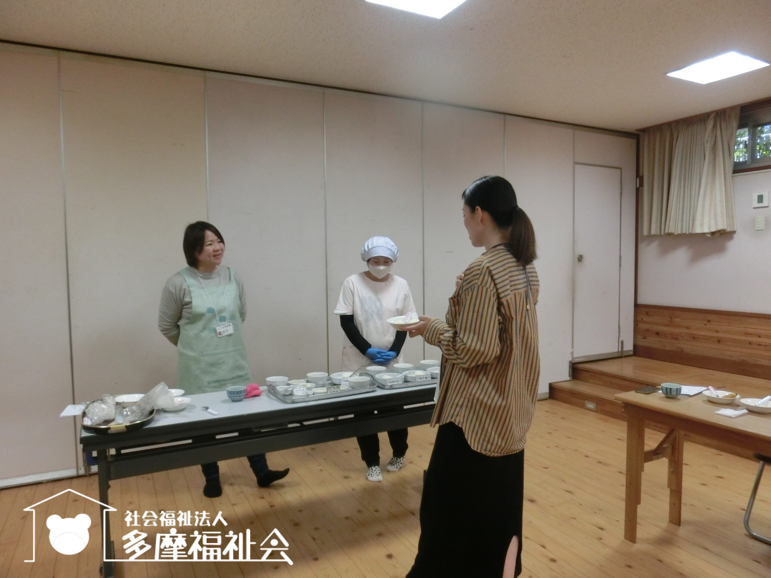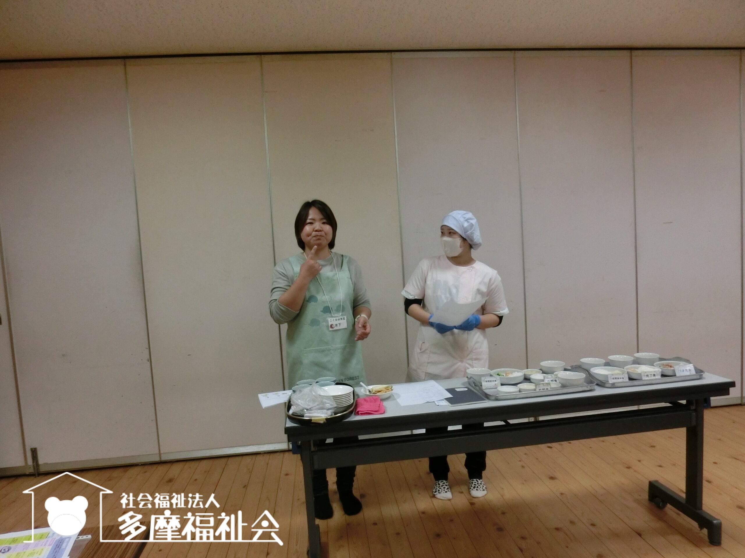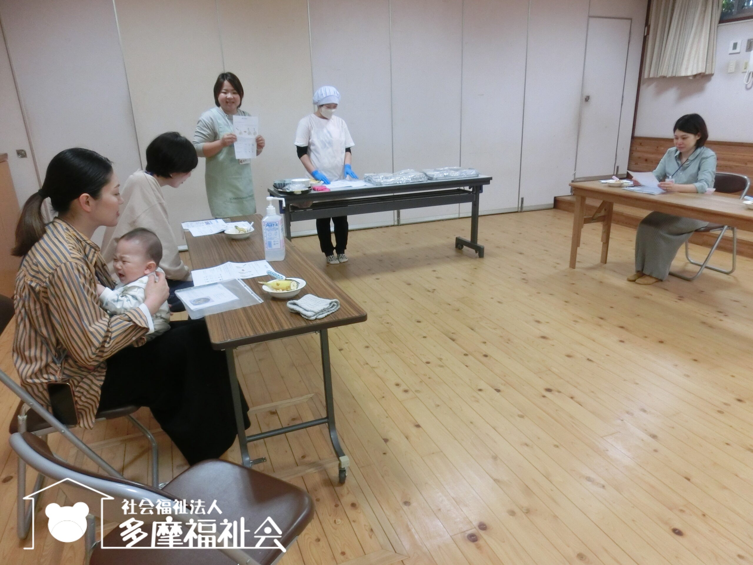 今日は実演ではなく。、栄養士が赤ちゃんの食べ方について、参加者のかたがたに体験していただきながら解説をしました。