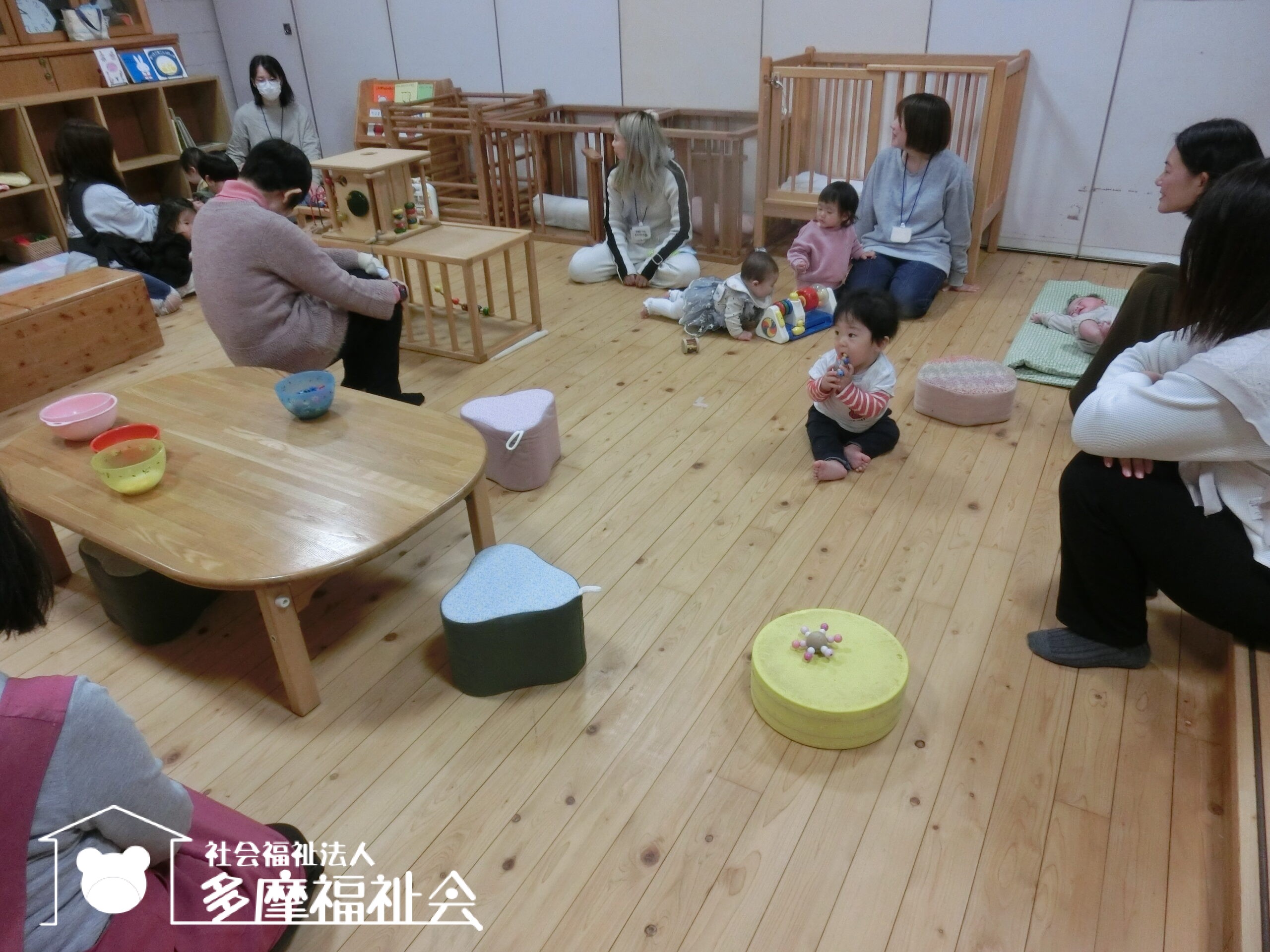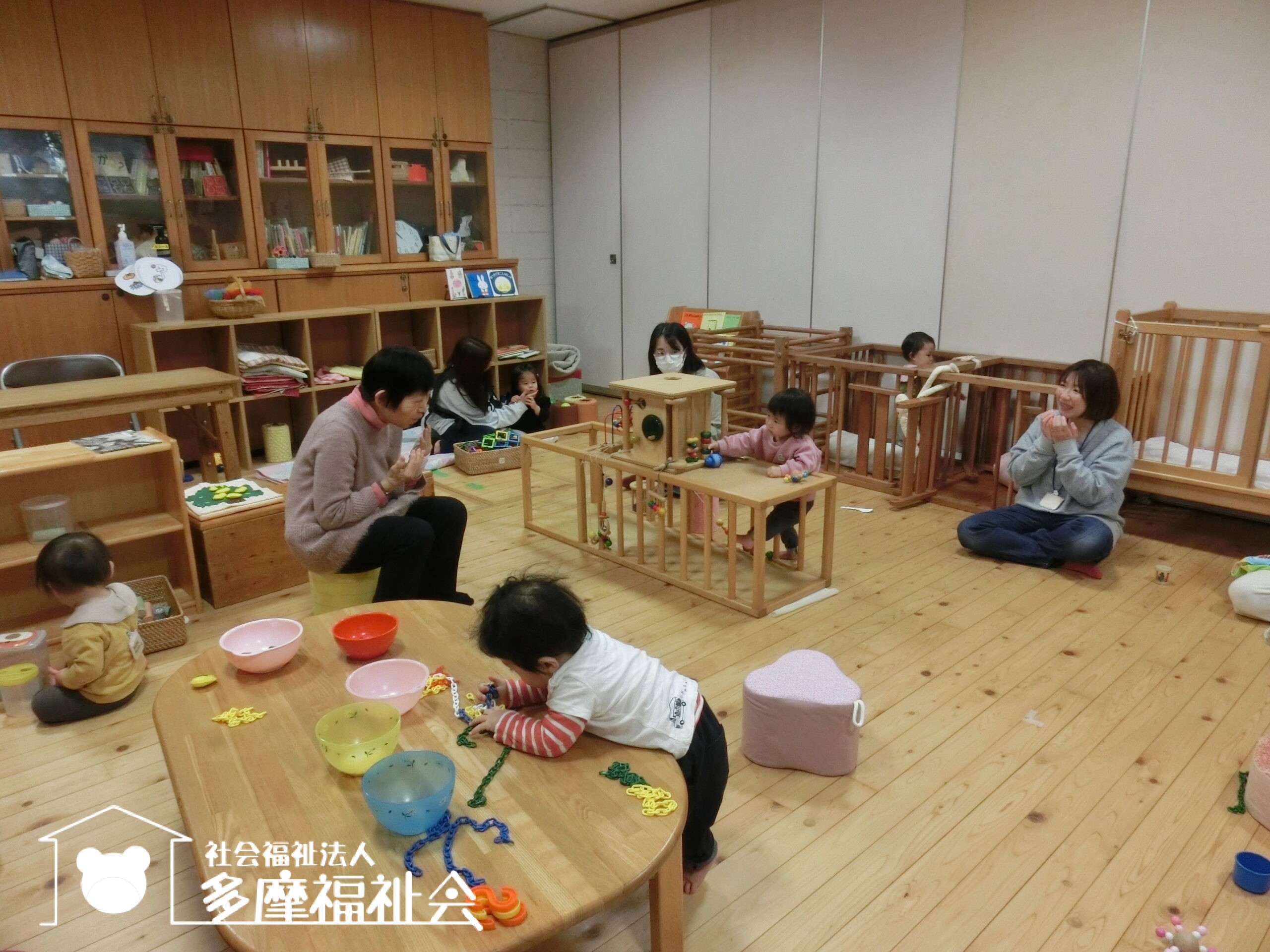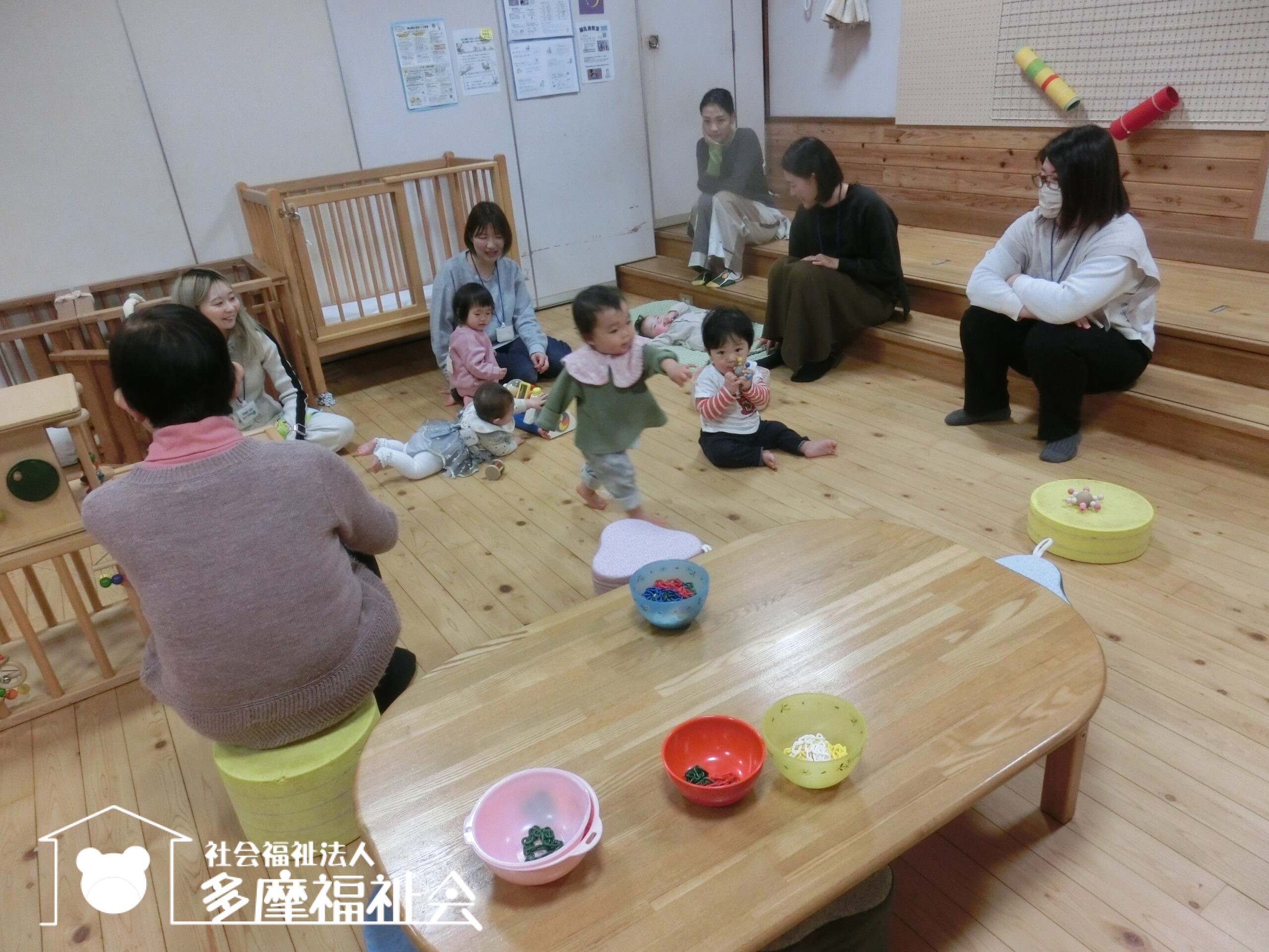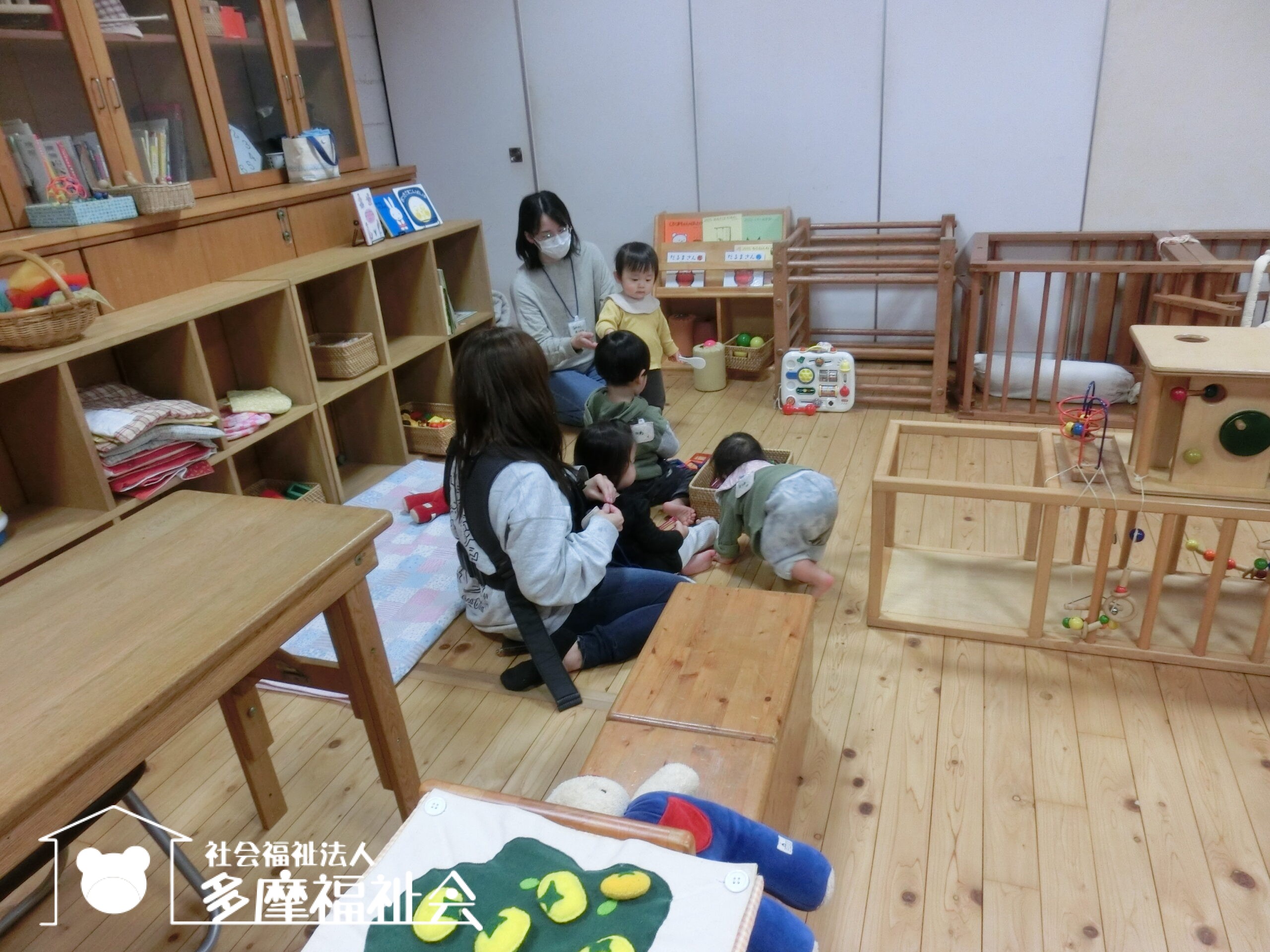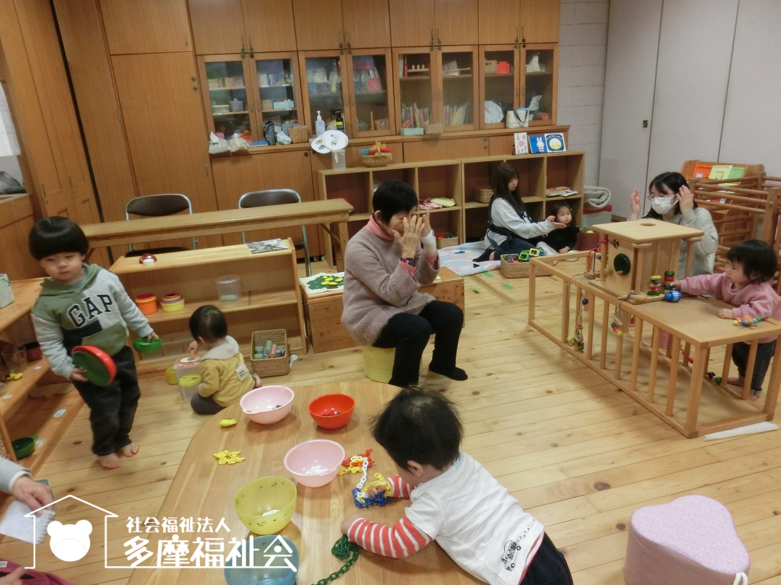 わらべうたであそびましょう。「ちょちちょちちょち わくわくわく おつーむてんてん がっからぼー!」いないないばあ!