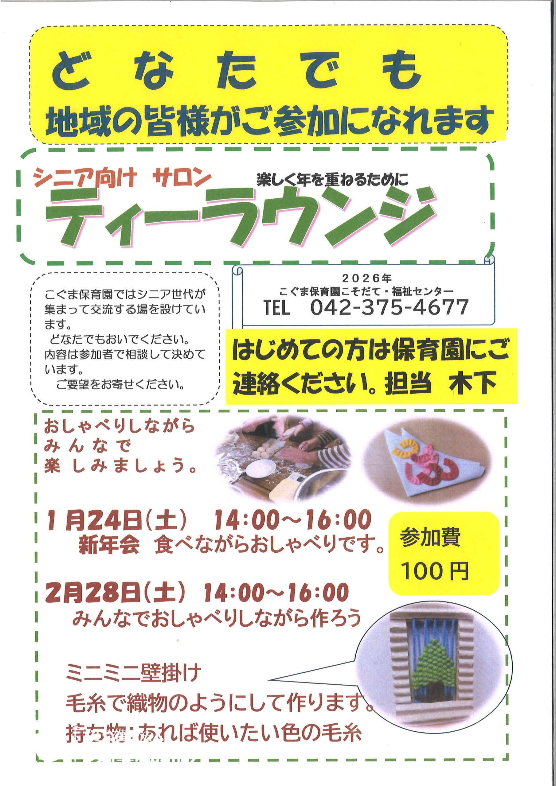 1月2月のシニアサロンへお出かけください。
