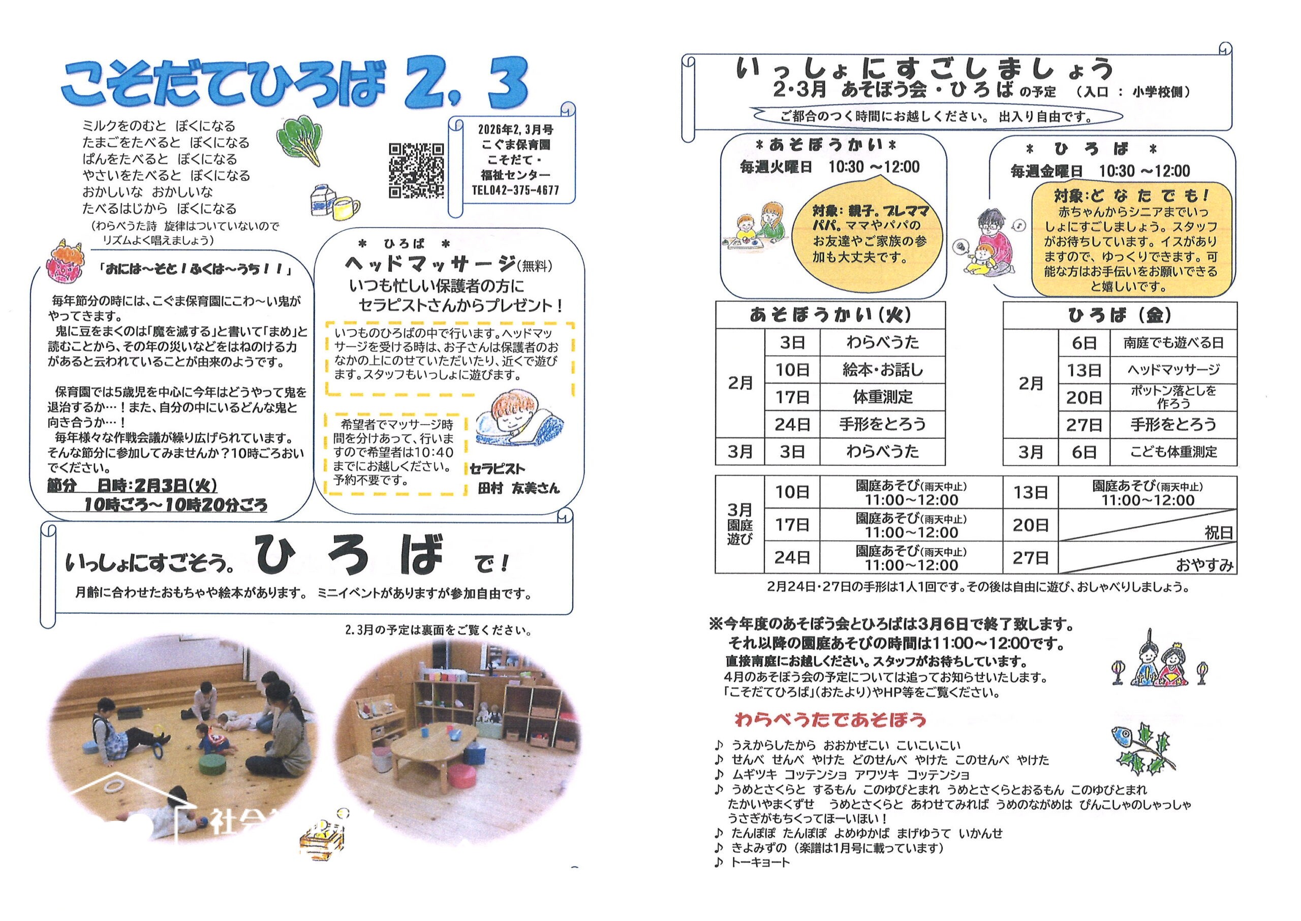 あそぼうかいの2・3月号を掲載します。