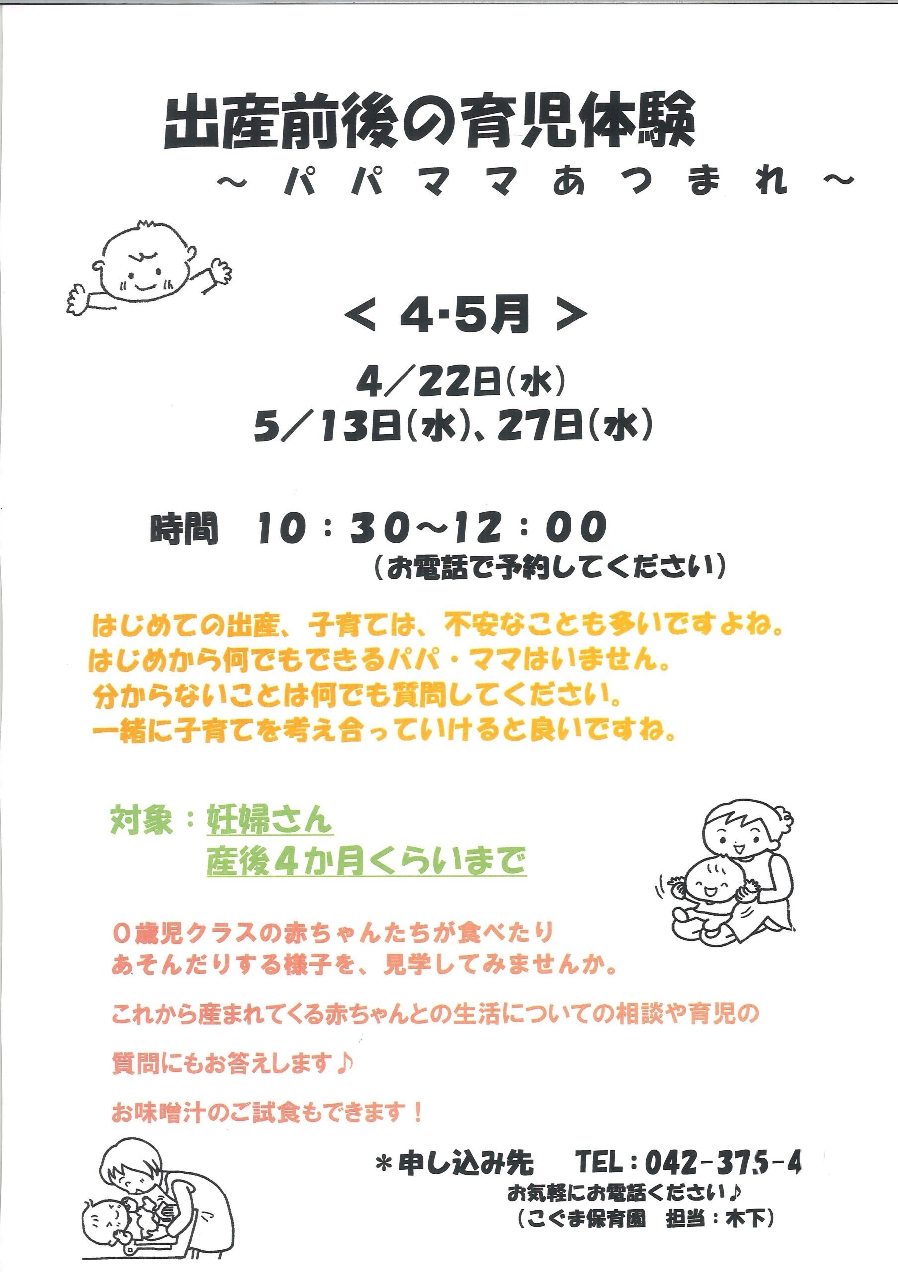 出産前後の保育所体験(パパママあつまれ~…