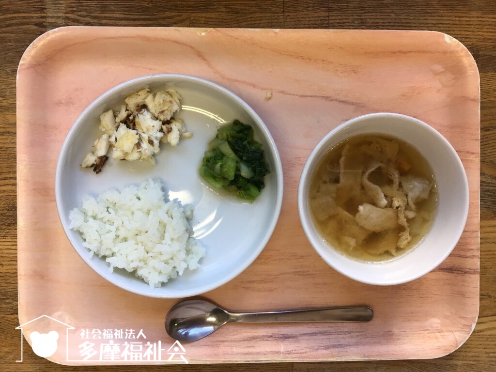 2月5日 ジャンローとしらたきのたらこ和え、小松菜の胡麻和えです。