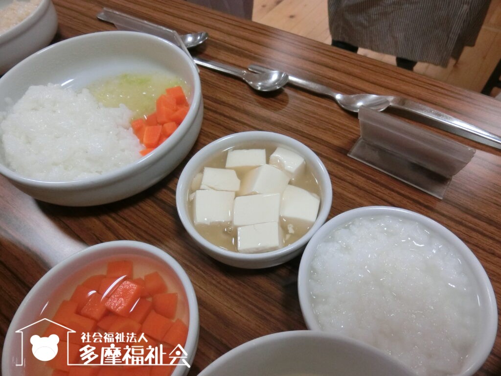 10月17日のひろばでは離乳食教室を行いました。 豆腐の野菜煮の実演をしました。離乳食全段階の味見…
