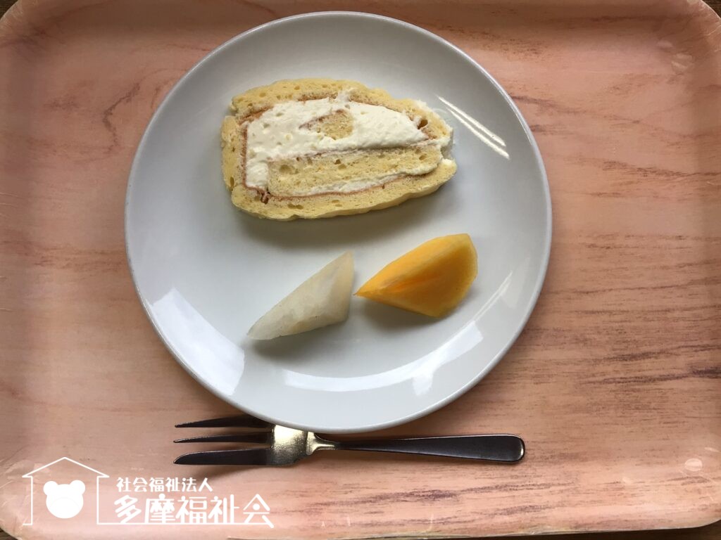 10月10日 マロンケーキです。生クリームにマロンペースト混ぜ込んだロールケーキです。