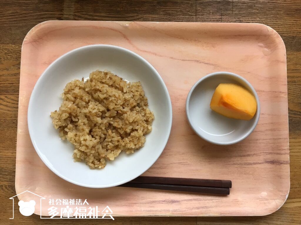 10月20日 今日は、鶏肉、人参、椎茸が入った中華おこわです。