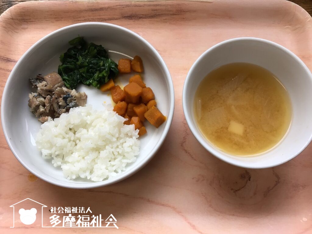 11月6日 旬のサンマの塩焼きとかぼちゃの煮物、ほうれん草のお浸しです。