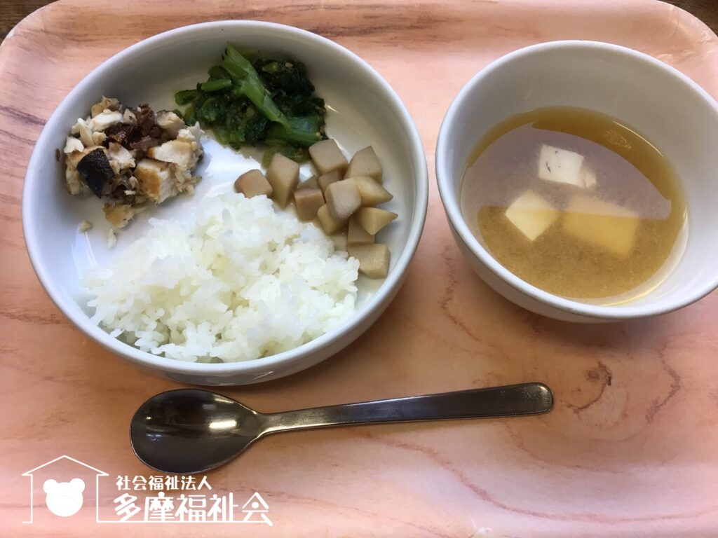 11月7日 ブリの照り焼きと里芋の煮っ転がし、小松菜の胡麻和えです。